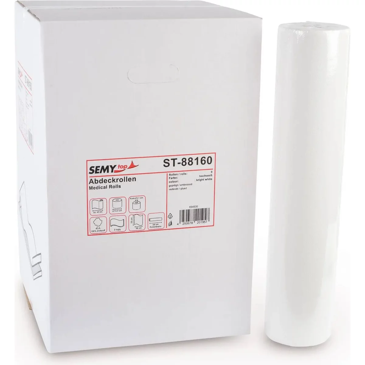 Abdeckrollen, Ärzterollen, 2-lagig, 59 cm, Zellstoff, hochweiß, verklebt – SemyTop – ST-88160