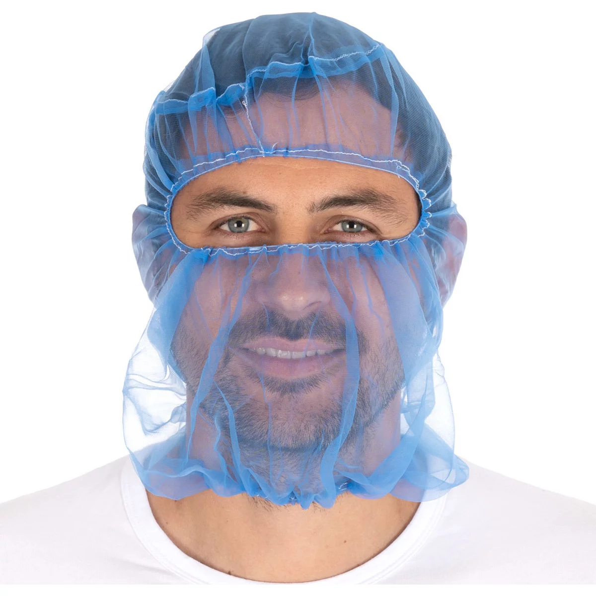 Die Besonderheit dieser Astrohauben liegt im Material: Micromesh aus Nylon ist besonders luftdurchlässig, weich und elastisch. Die Mikromaschen lassen den Kopf und die Haut atmen. Somit sind die Astrohauben auch bei langen Tragezeiten stets komfortabel und angenehm leicht. Darüber hinaus ist der Gesichtsausschnitt so flexibel, dass Sie die Astrohaube in drei Varianten tragen können: entweder nur den Kopf bedeckt mit freiem Gesicht oder über den Mund gezogen oder gleichzeitig über Mund und Nase gezogen, dass nur die Augenpartie frei ist. Die Astrohauben Micromesh sind daher ideal für Hygienebereiche in der Lebensmittelindustrie und Schlachtereien.