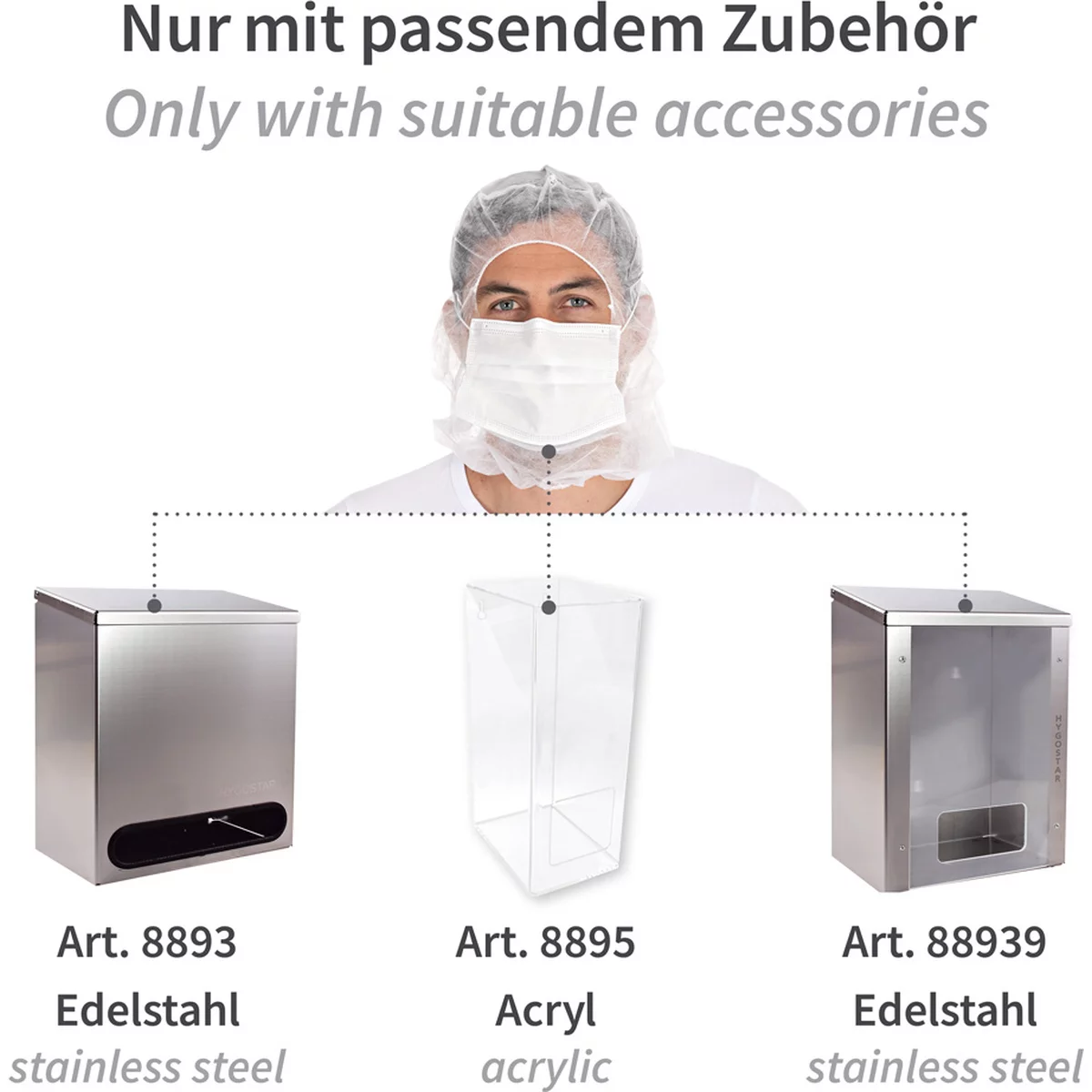 - Art.-Nr. 8893: Edelstahlspender für Hauben