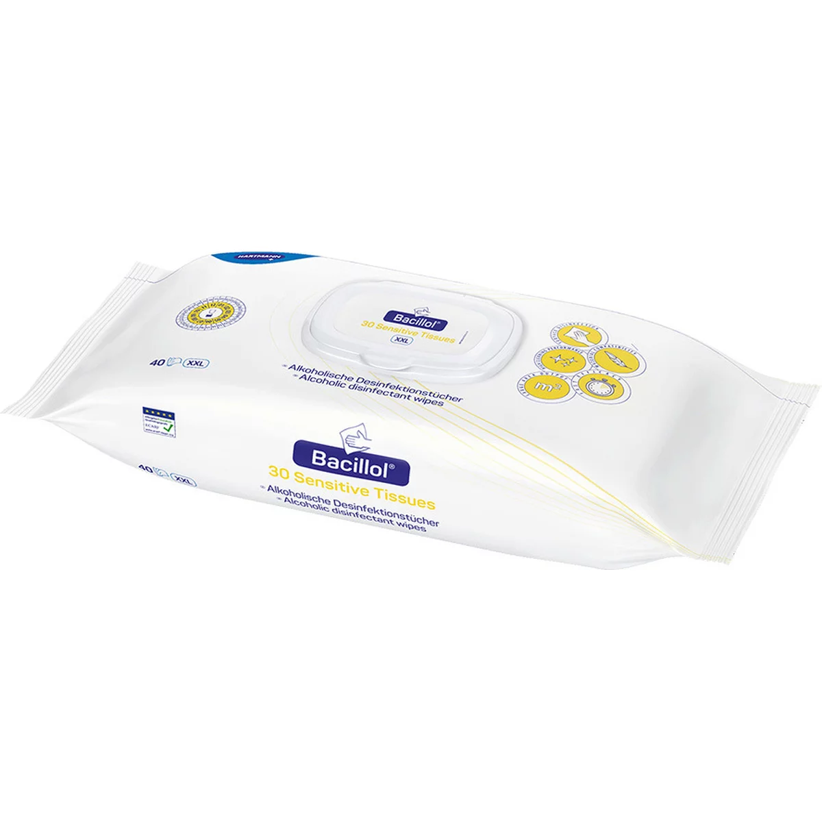 Hartmann Bacillol® 30 Sensitive Tissues, XXL, Alkoholische Desinfektionstücher.