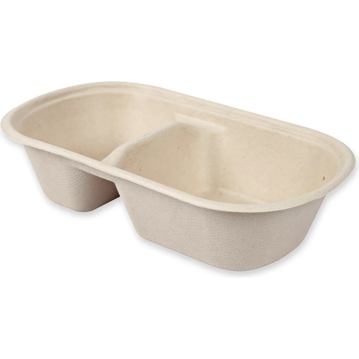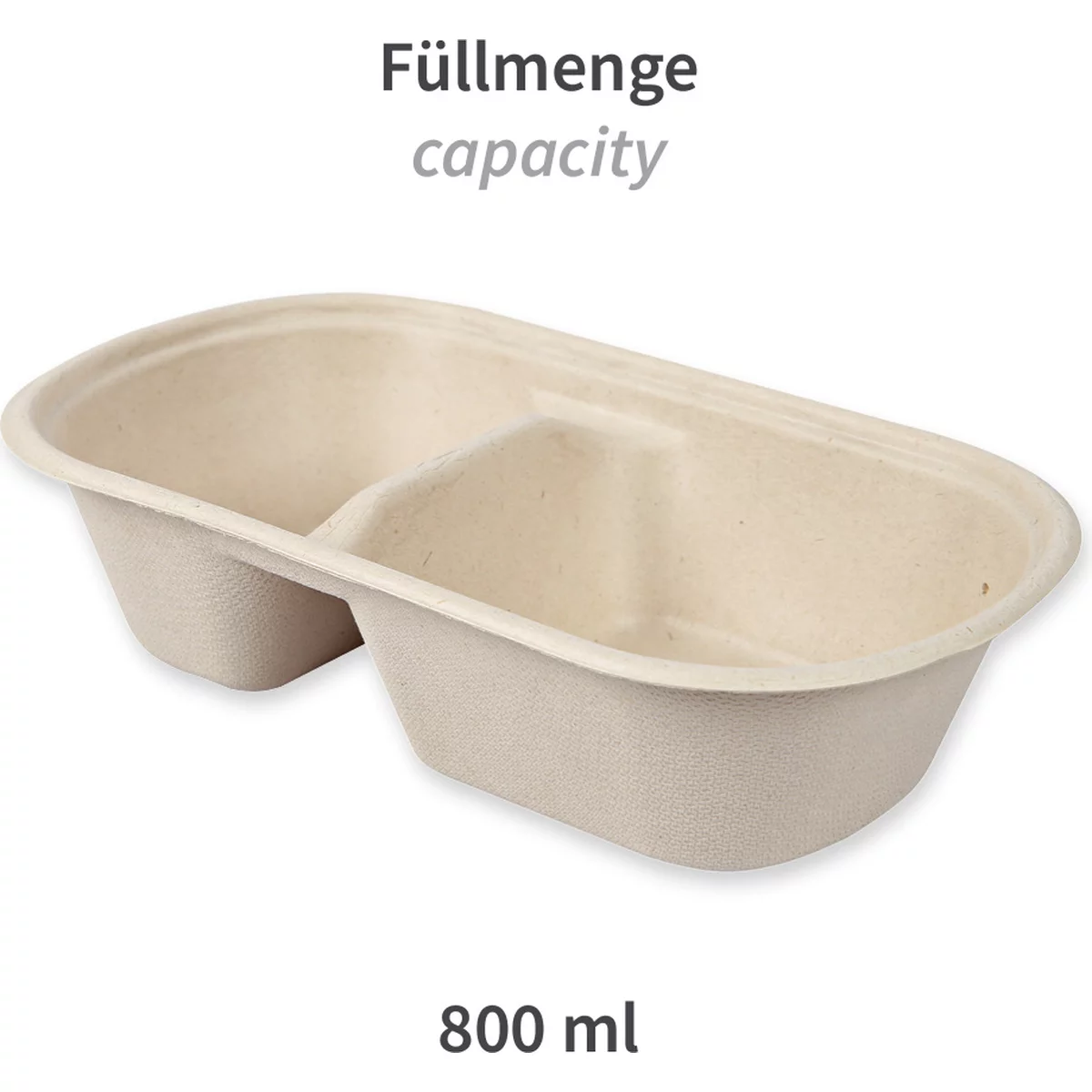 Die länglichen Bio-Imbissschalen bieten Ihnen eine nachhaltige Lösung für Ihren To-go-Bereich. Mit einem Fokus auf Umweltverantwortung und Qualität bieten diese Schalen eine erstklassige Wahl für das Servieren von Snacks, Beilagen oder Hauptgerichten in jeder Imbissstube, Foodtruck oder Restaurant. Die industriellkompostierbaren Imbissschalen werden aus Zuckerrohr-Bagasse hergestellt, einem Nebenprodukt der Zuckerproduktion, das sich hervorragend als nachhaltiges Material für Einweggeschirr eignet. Die Imbiss-Schalen sind biologisch abbaubar und kompostierbar gemäß EN 13432, wodurch sie eine umweltfreundliche Alternative zu herkömmlichem Einweggeschirr bieten. Darüber hinaus sind robust, stabil und temperaturbeständig. Die Bio- Schalen sind mikrowellengeeignet, perfekt für warme Gerichte oder zum schnellen Aufwärmen von Speisen. Mit ihrem ovalen Design eignen sich diese Schalen ideal für eine breite Palette von Speisen: von Pommes Frites über Pasta bis hin zu Salaten. Die Variante mit der 2-Teilung ist ideal, wenn Beilagen, Dips oder Soßen hygienisch mitserviert werden sollen.