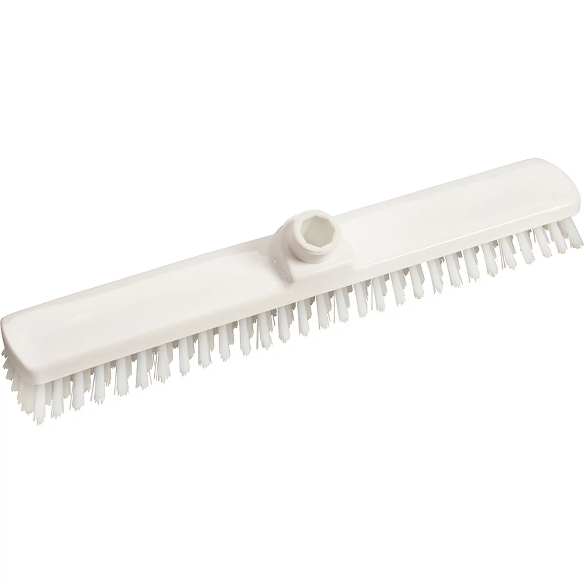 Der Großraumwischer von Haug Bürsten besteht aus einem hochwertigen Polypropylenkörper und harten Polyesterborsten. Dadurch ist er optimal für den Einsatz bei großen Flächen zur Bodenreinigung und Bodenpflege geeignet. Die Borsten besitzten ungeschlitzte Faserenden für noch mehr Robustheit, zudem sind sie bis 140 °C hitzebeständig gegen Heißluft. Durch das originale Haug Steck-/Schraubsystem ist es möglich verschiedene Komponenten des Haug Sortiments fest und sicher miteinander zu verbinden. Der Großraumwischer ist HACCP geeignet und erfüllt die hygienischen Vorschriften.