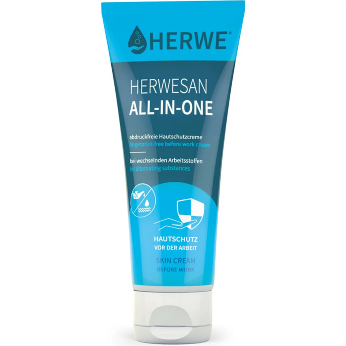 Nur 1 Hautschutzmittel bei wechselnden Arbeitsstoffen- Leicht verteilbar und schnell einziehend- Griffiges Hautgefühl, da nicht fettend- Abdruck- und silikonfrei- Unter Handschuhen verwendbar- Sparsam in der Dosierung