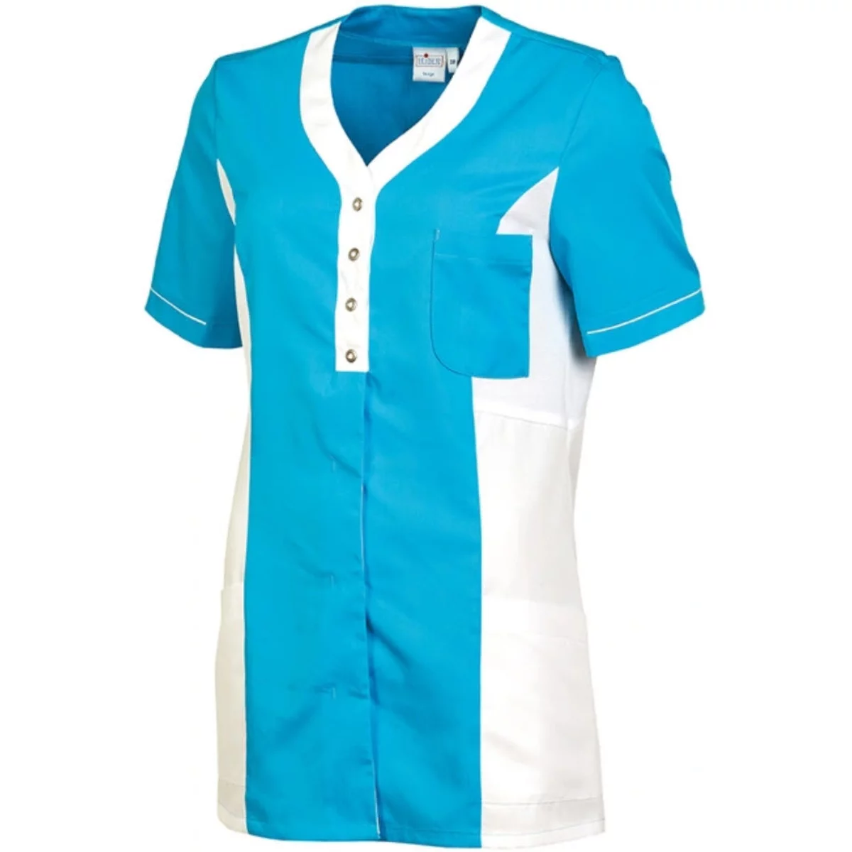 Kasack, sehr softes Gewebe, 2 Seitentaschen, 1 Brusttasche, verdeckte Druckknopfleiste, atmungsaktives Stretchgewebe aus Piqué-Gewebe aus TENCEL™Lyocell in Seitenpassen, Seitenschlitze, Industriewäsche geeignet, 50% Baumwolle, 50% Polyester, ca. 150 g/m², Größen: 34 – 50, Länge: Gr. 38 = ca. 75 cm