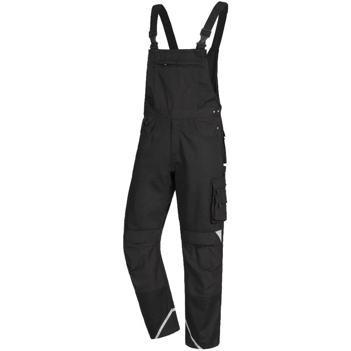 MOTION TEX PLUS, Latzhose, schwarz, 280 g/m2, dehnbarer Bund, Schenkeltaschen mit Patten, Hammerschlaufe, Zollstocktasche mit aufgesetzter Tasche, zwei Gesäßtaschen, Reflexelemente, D-Ring, zwei große Seitentaschen, verstärkte Beinabschlüsse mit zusätzlichen Reflexelementen, Knieverstärkungen mit Taschen für Kniepolster, Latz-Innentasche mit Reißverschluss und aufgesetzten Außentaschen, elastische Trägerabschlüsse, stabile Clipverschlüsse, Dreifachnähte, OEKO-TEX Standard 100
