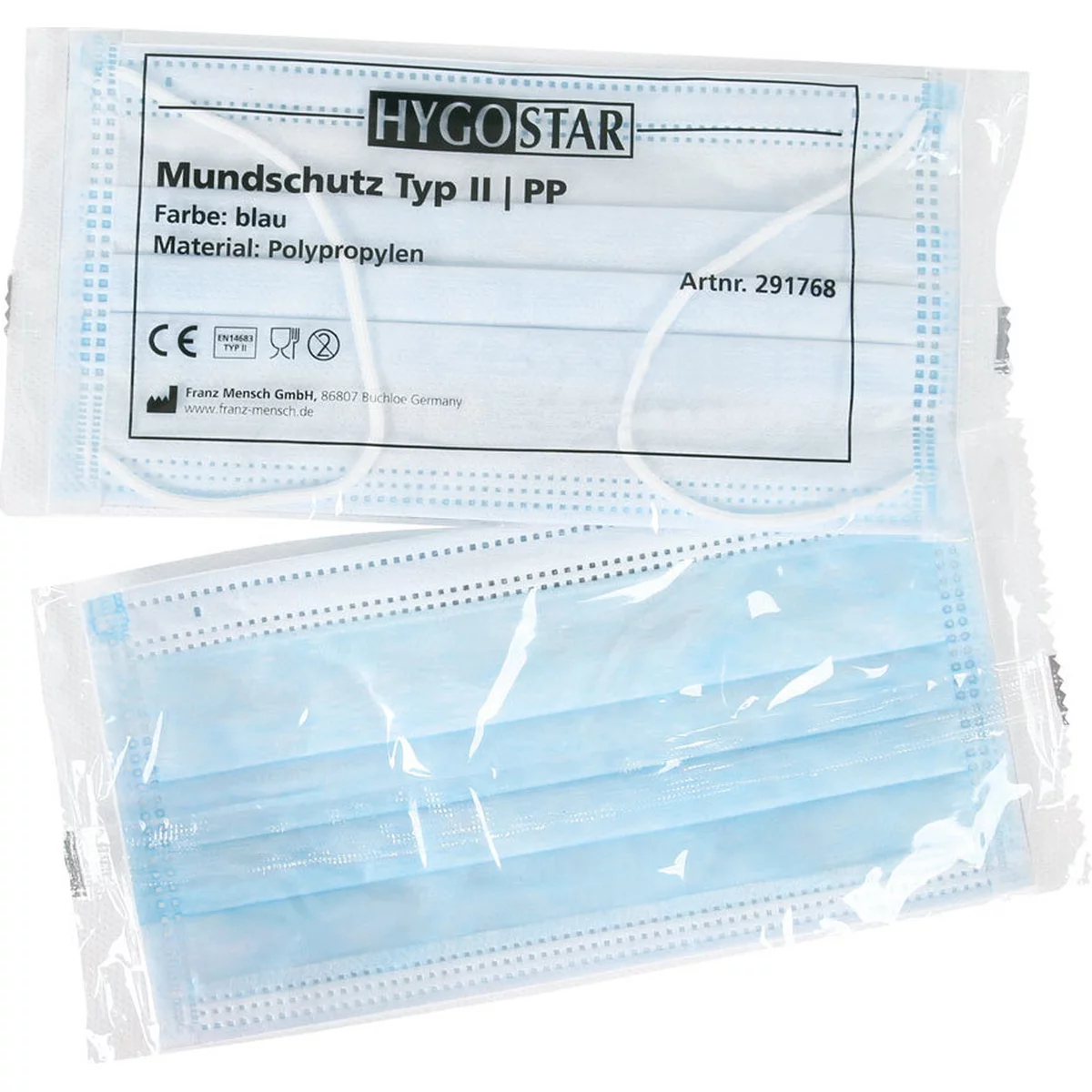 Mundschutz Typ II, 3-lagig aus PP einzeln verpackt von Hygostar.