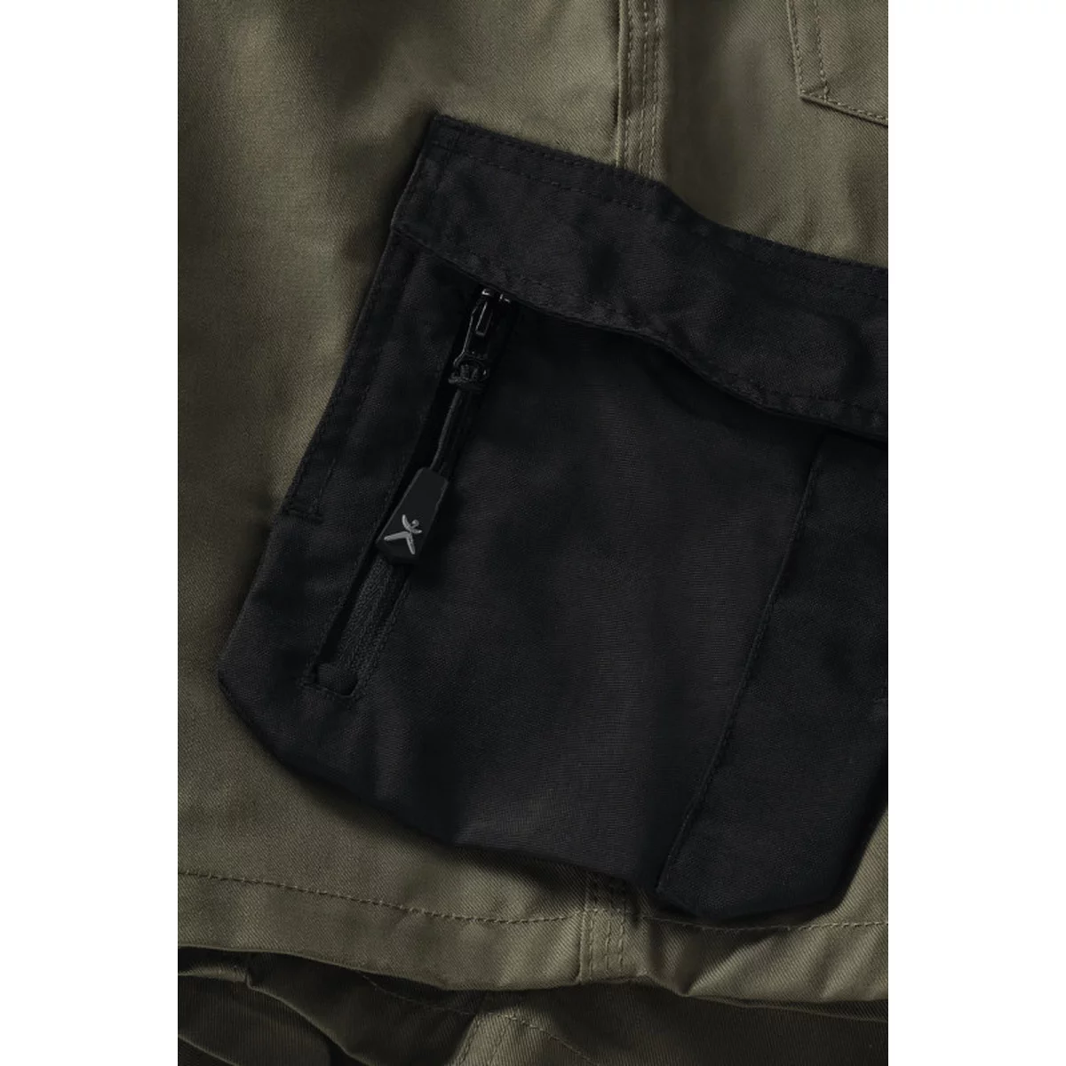 - Material: 65 % Polyester, 35 % Baumwolle, ca. 245 g/m², Verstärkung, 100 % Nylon, ca. 195 g/m², Elastischer Einsatz, 95 % Polyester, 5 % Elastan, ca. 165 g/m²