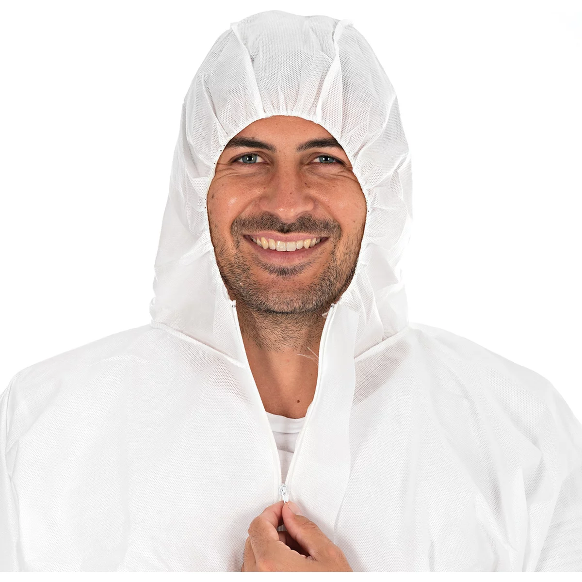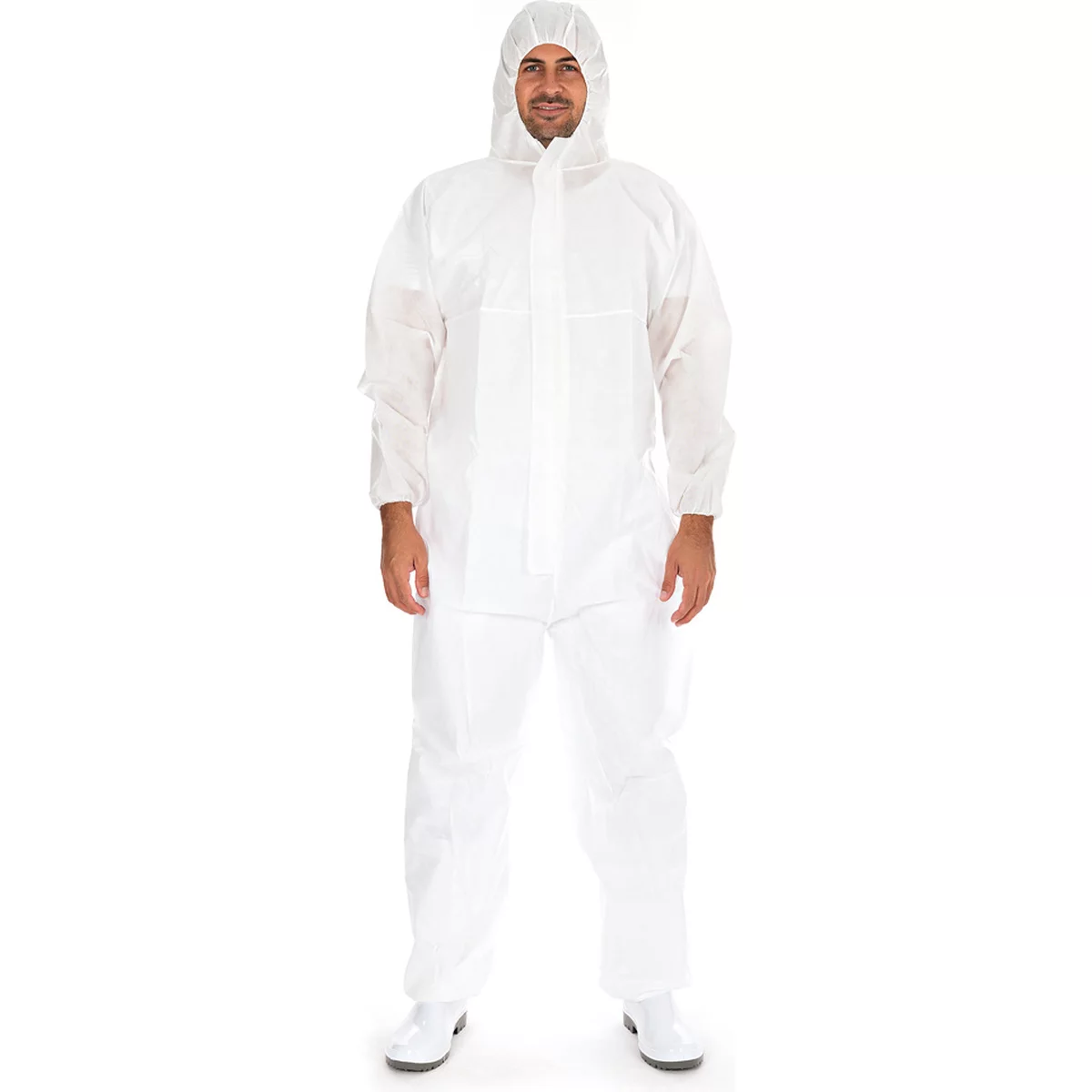 Der feuerhemmende Overall eignet sich speziell für Arbeiten mit Feuer und Funken. Er besteht aus dem Mischmaterial SMS. SMS setzt sich aus zwei Lagen Polypropylen-Vlies und einer Lage Meltblown zusammen. Vorteil: Flüssigkeit wird abgewiesen und Schweiß kann dennoch absorbiert werden.