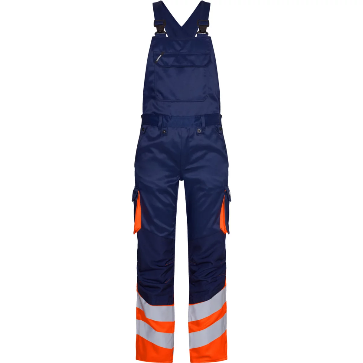 Funktionelle, fluoreszierende Latzhose im modernen Design. Optimale Passform mit u. a. ergonomisch geformtem Kniebereich. Der Stoff ist strapazierfähig und atmungsaktiv und besteht zu 50% aus, recyceltem Polyester.. Der elastische Taillenbund hinten sorgt für eine gute Passform und einen sicheren Sitz der Latzhose. Knöpfe für leichtes und schnelles Befestigen von Hängetaschen. D-Ring am Latz für die Befestigung von z. B. Ausweisen. Hoch geschnittenes Rückenteil und Rippstrickeinsätze an den Seiten sorgen für optimale Passform und viel Tragekomfort. Verstellbare Träger. Latztasche mit Taschenklappe und Klettverschluss. Die Latztasche hat innen eine Reißverschlusstasche. Zwei Schenkeltaschen mit Klettverschluss. Die linke Schenkeltasche hat eine zusätzliche Handytasche sowie eine Innentasche, z. B. für das Walkie-Talkie. Die rechte Schenkeltasche hat eine Innentasche für z. B. den Zollstock. Knieverstärkung/Knietasche mit Klettverschluss unten und besteht aus CORDURA®-Material. Reflexstreifen am Unterschenkel. Bekleidungsklasse 1. Nach 50 mal Waschen getestet.