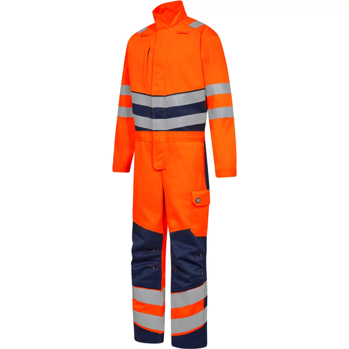 Der Safety+ Warnschutz-Overall von ENGEL ist für alle Arbeiten geeignet, bei denen hohe Anforderungen an Sichtbarkeit und Sicherheit gestellt werden. Mit fluoreszierenden Farben und zertifizierten Reflexen bist du sichtbar. Dieser Overall ist aus flammhemmendem Material gefertigt, das dir mit seinen antistatischen und flammhemmenden Eigenschaften Schutz vor Flammen, Chemikalien, Spritzern von geschmolzenem Metall, elektrischen Lichtbögen, Schweißfunken und vielem mehr bietet. Die verdeckten Knöpfe und Reißverschlüsse schützen außerdem die Teile, mit denen du arbeitest. Gleichzeitig erhältst du einen Overall mit einer sehr guten Passform, bei dem du beispielsweise die Ärmelöffnungen auf die richtige Weite und Knieschutzkissen auf die richtige Höhe einstellen kannst.