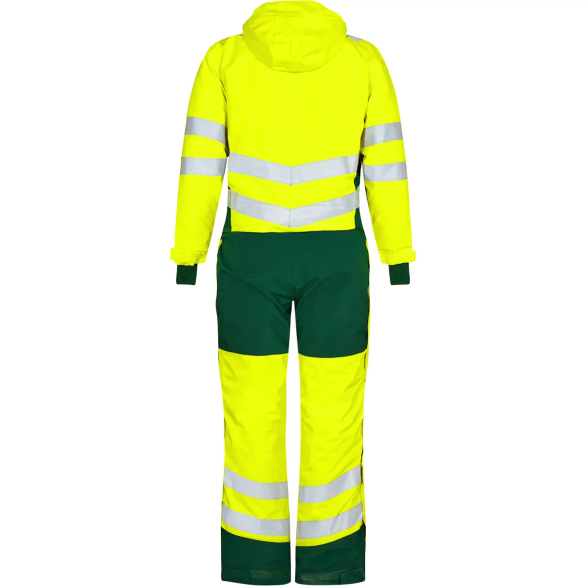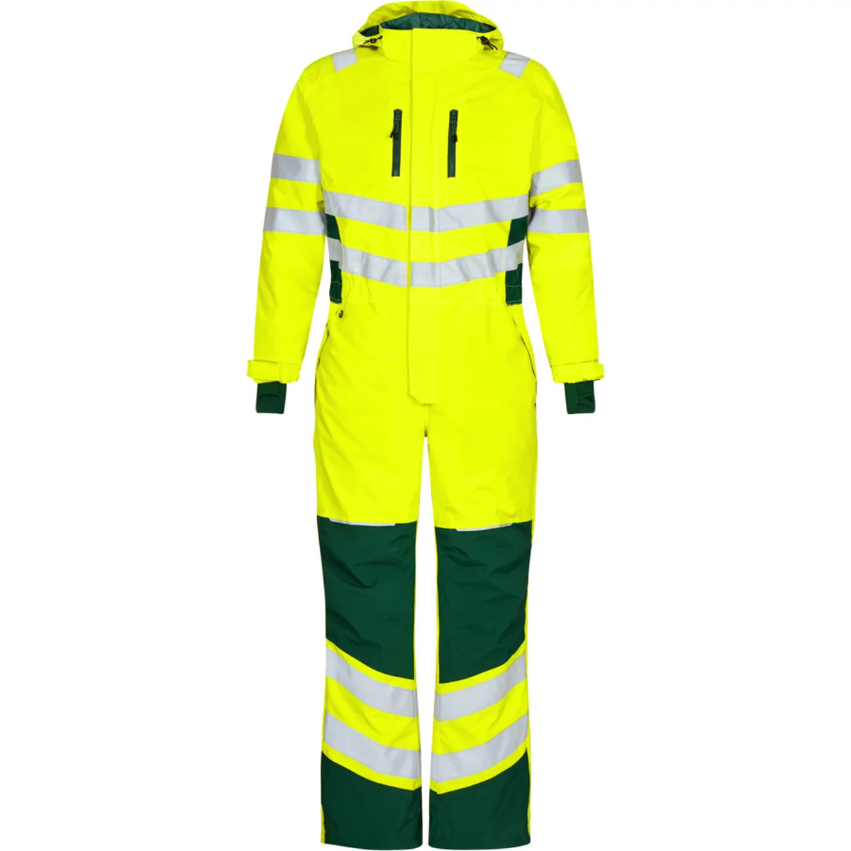 Fluoreszierende, atmungsaktive sowie wasser- und winddichte Winteroverall mit verschweißten Nähten und hohem Kragen im modernen Design. Doppelte Knopfleiste mit Reißverschluss sowie Klettverschluss vorne. Zwei geräumige Seitentaschen mit Klettverschluss. Zwei Brusttaschen und eine Reißverschluss-Handytasche, durch die man ein Kabel durchziehen kann. Abnehmbare Kapuze mit ausreichend Platz für den Arbeitshelm. Rippendetail im Lendenbereich hinten, das für gute Passform und Bewegungsfreiheit sorgt. Knieverstärkung. Verstellbare Bündchen an den Ärmeln und an den Hosenbeinen unten. Reißverschluss an der Außenseite beider Hosenbeine. Reißverschluss im Futter, geeignet für Aufdruck/Stickerei. Reflexstreifen über die Schulterpartie hinweg sowie rund um Ärmel, Taille und Beine. Bekleidungsklasse 3. Nach 50 mal Waschen getestet.
