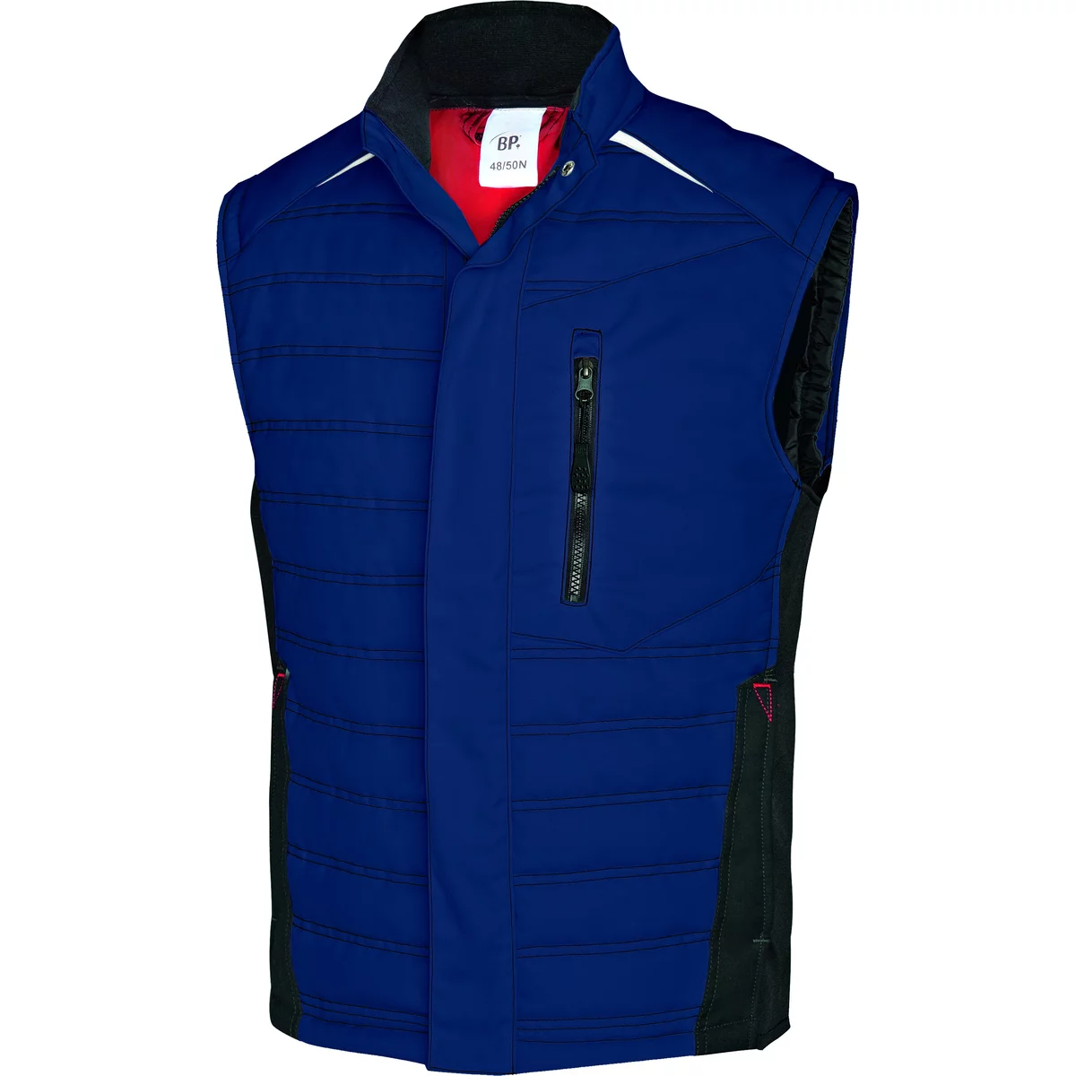 Schlanke Silhouette, wattiert mit wärmendem Thermosteppfutter, gefütterter Stehkragen, verdeckter 2-Wege-Frontreißverschluss mit Fleece-Kinnschutz, 1 Brusttasche mit Reißverschluss, geräumige Seitentaschen, Reflexelemente, seitliche Stretcheinsätze für mehr Bewegungsfreiheit, verlängerter Rücken