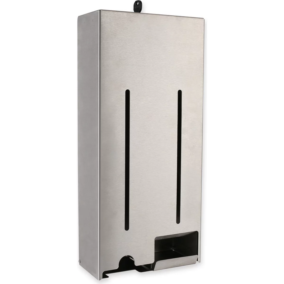Dieser Duo-Spender ist ideal für alle Waschräume, Umkleiden oder Toilettenräume. Er bewahrt Tampons und Damenbinden hygienisch und stets griffbereit auf. Der Spender besteht aus robustem Edelstahl und kann einfach an der Wand montiert werden. Er ist abschließbar und 2-geteilt. Somit kann er auf der einen Seite mit Tampons ohne Applikator und auf der anderen Seite mit einzeln-verpackten Binden befüllt werden. Die Ausgabe erfolgt über eine kleine Schütte. Der Füllstand ist über einen Sehschlitz jederzeit zu erkennen.