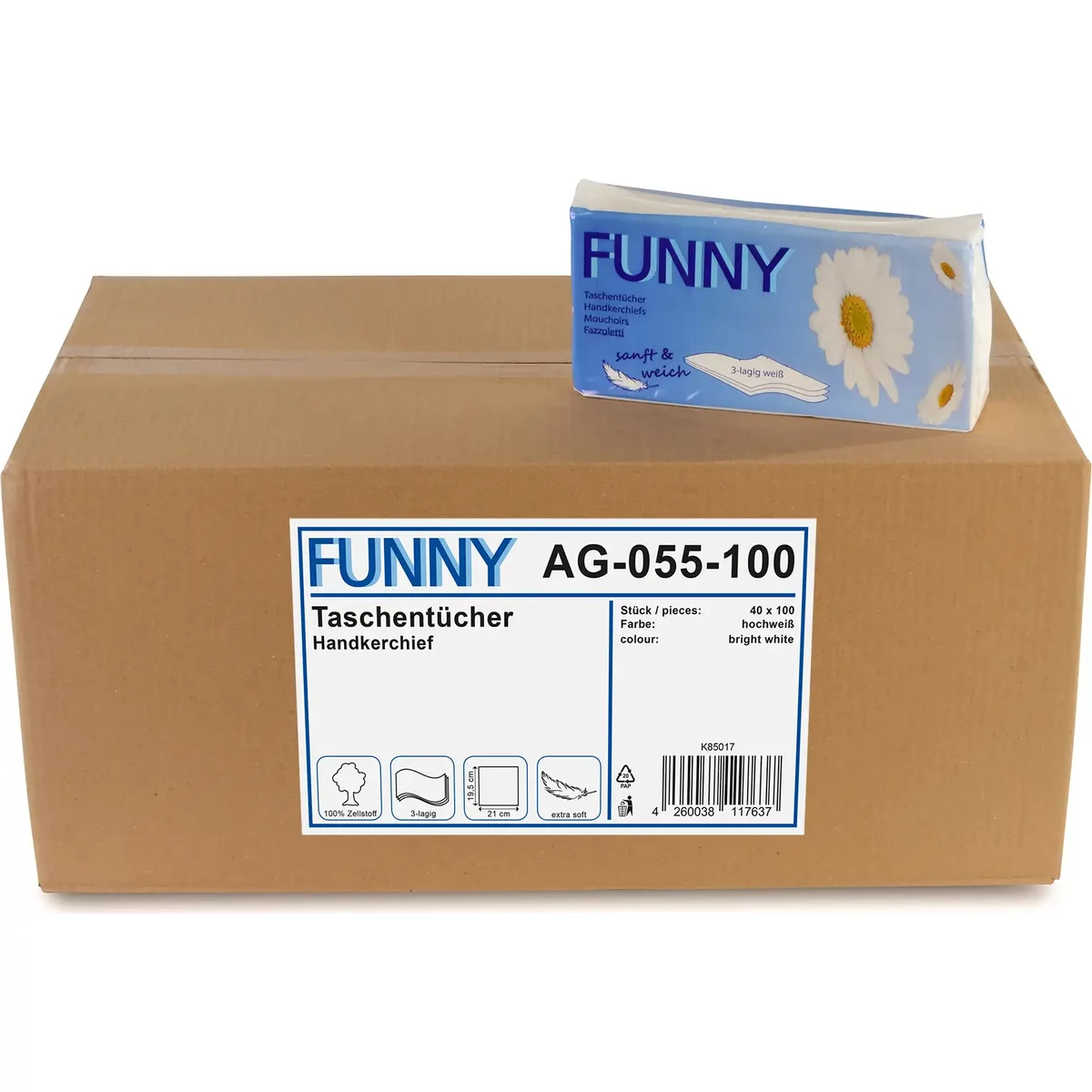 Taschentücher, 3-lagig, 100er Pack, hochweiß, Zellstoff – Funny – AG-055-100
