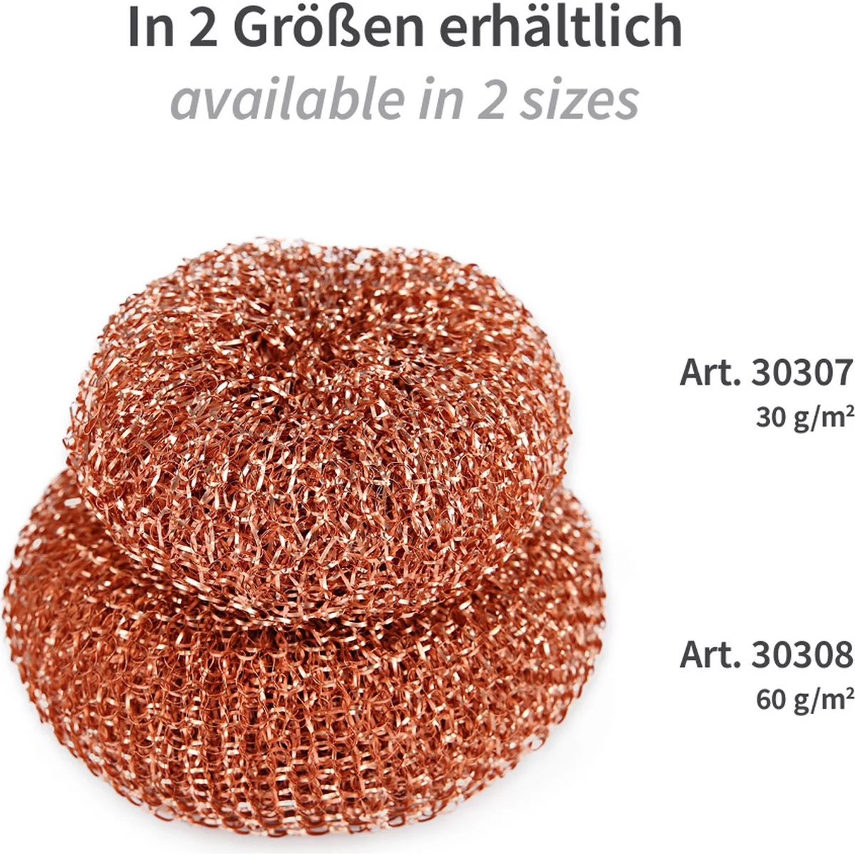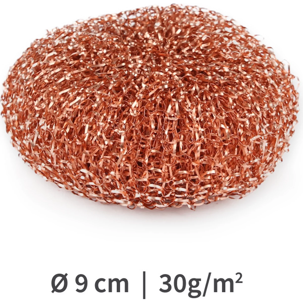 Kupfer ist unschlagbar, wenn es um das Entfernen von festsitzendem Schmutz geht. Die Topkratzer aus Kupfer reinigen besonders gründlich und sind dabei sanft zur Oberfläche. Mit Kupfer-Topfreinigern säubern Sie Töpfe, Pfannen, Herde, Edelstahl, Besteck und Glasflächen gründlich sowie schonend. Einfach nass machen und ohne Reinigungsmittel über die Fläche schrubben. Kupfer ist antibakteriell und daher ideal für Hygienebereiche. Besonders in der Gastronomie sind Kupfer-Topfreiniger zu empfehlen. Die Kupferfäden kratzen nicht, wenn sie nass sind, und gleichzeitig sind sie stark gegen Verschmutzungen.